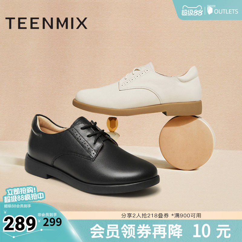 天美意英伦小皮鞋平底鞋女乐福鞋系带复古单鞋春新款CCJ50AM4奥莱