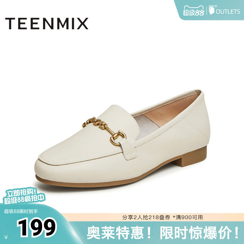 天美意平底英伦乐福鞋复古单鞋女一脚蹬小皮鞋春新款CPC26AA4