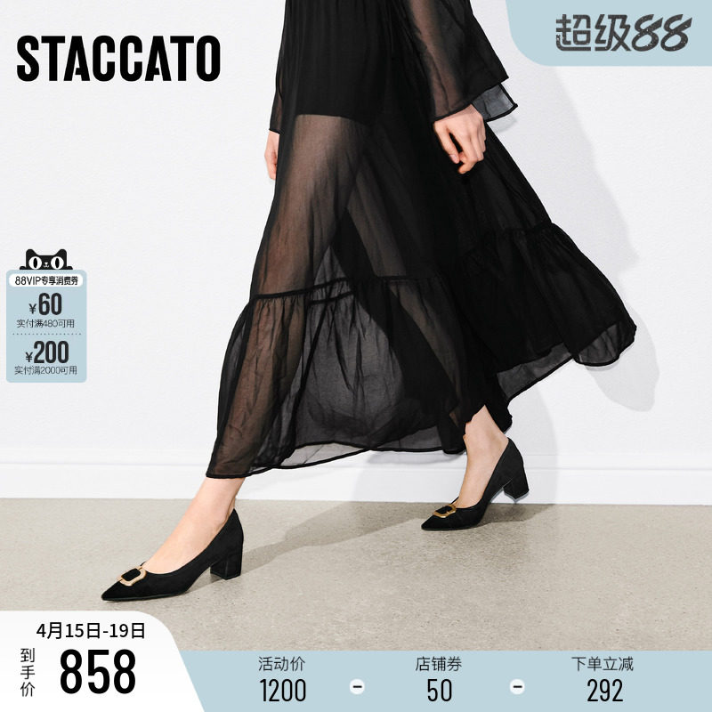 思加图2026新款中环街中跟复古单鞋浅口鞋气质通勤女皮鞋EGA04AQ6