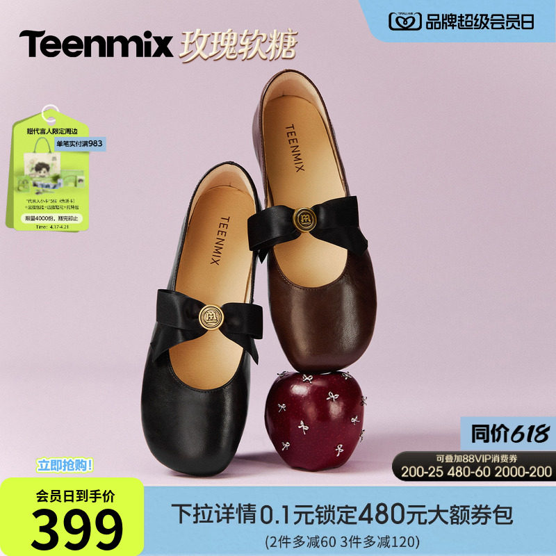 天美意玫瑰软糖复古平底玛丽珍小皮鞋女软底浅口单鞋2026春季新款