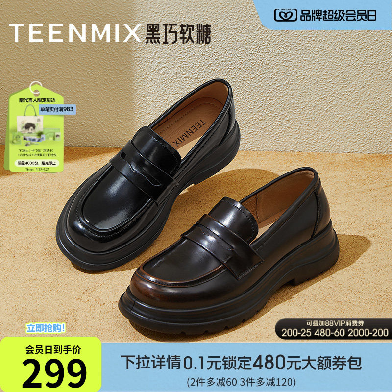 天美意芝士分子厚底休闲英伦乐福鞋复古单鞋女新款一脚蹬小皮鞋子