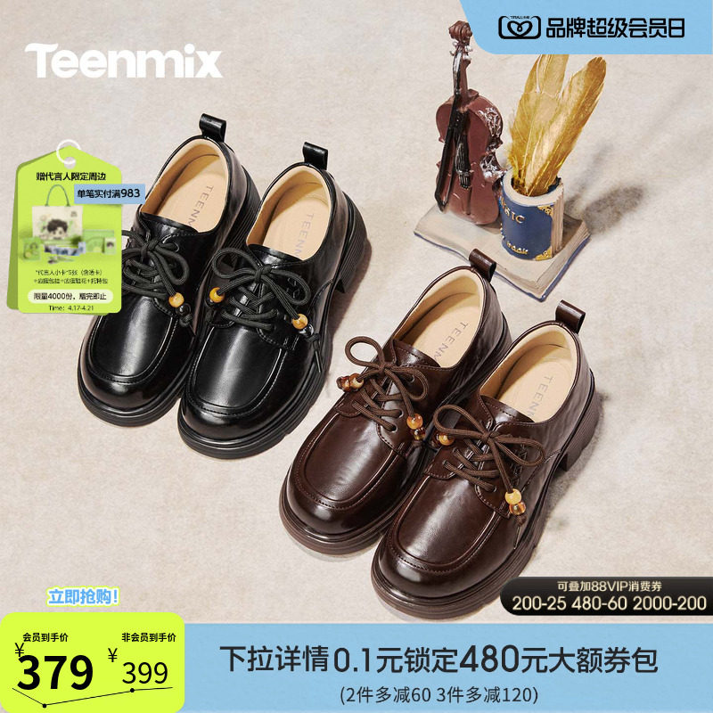 天美意复古系带软底英伦乐福小皮鞋女厚底单鞋2026春新款COY49AM6