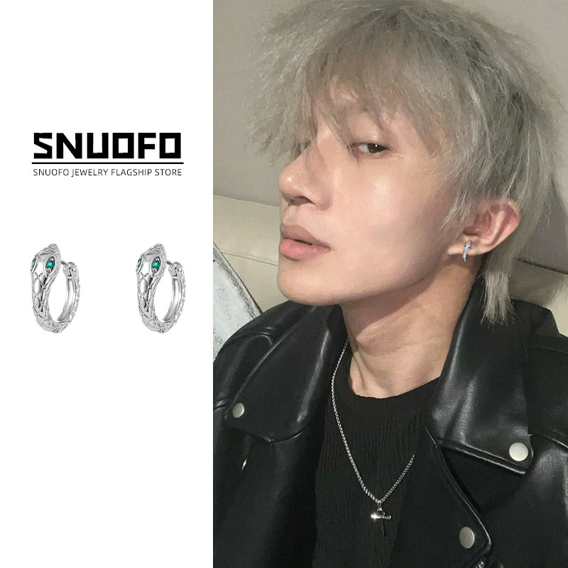 小众蛇形纯银耳钉男生轻奢朋克男士美式独特耳环设计感嘻哈耳饰酷