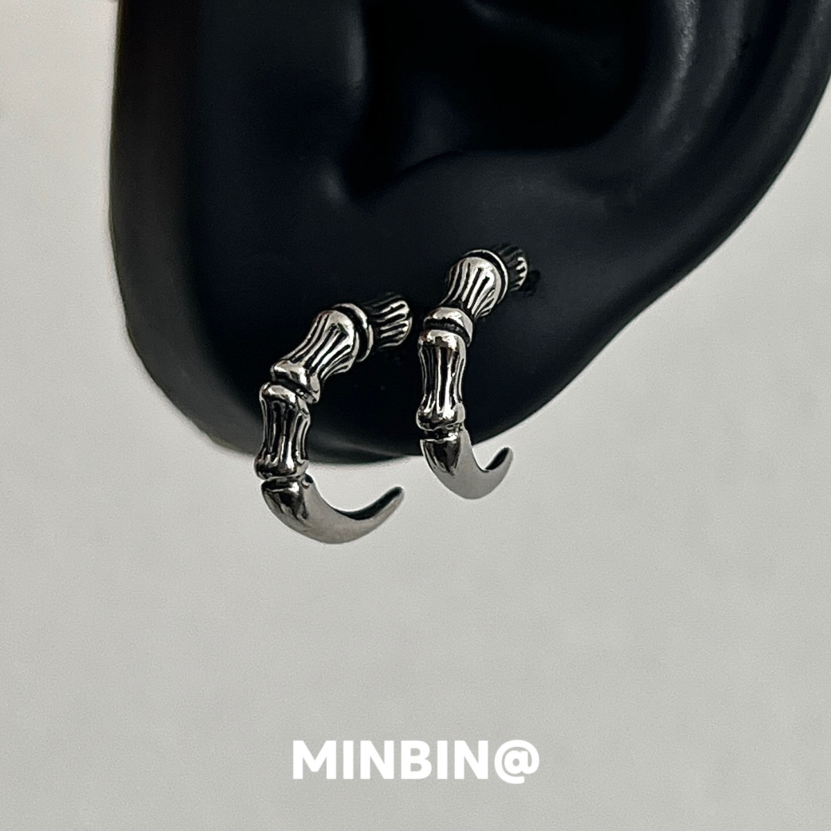 Shinma 欧美复古朋克暗黑骨头拼接压花钛钢耳环耳钉气质男士耳饰