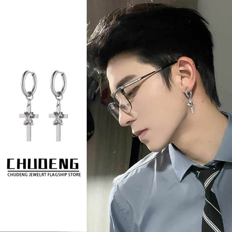 十字架耳环男嘻哈朋克钛钢耳钉小众设计高级感冷淡风耳坠女耳饰品