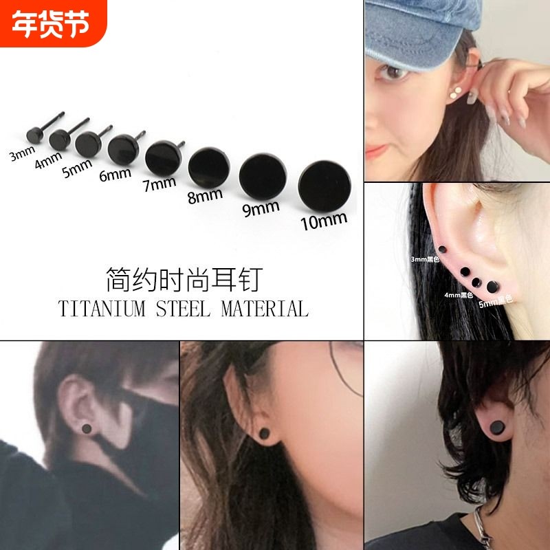 韩版耳钉男黑色经典圆形朋克小耳钉简约女生耳骨钉嘻哈百搭耳饰品