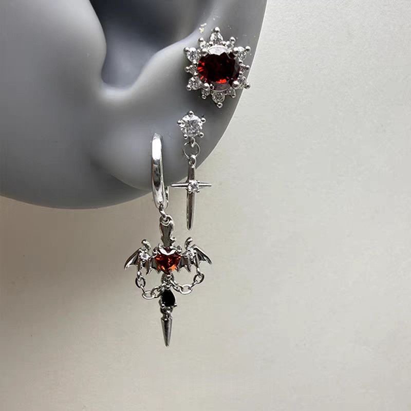 恶魔红色爱心翅膀耳钉暗黑复古朋克风小众独特轻奢个性耳饰男女潮