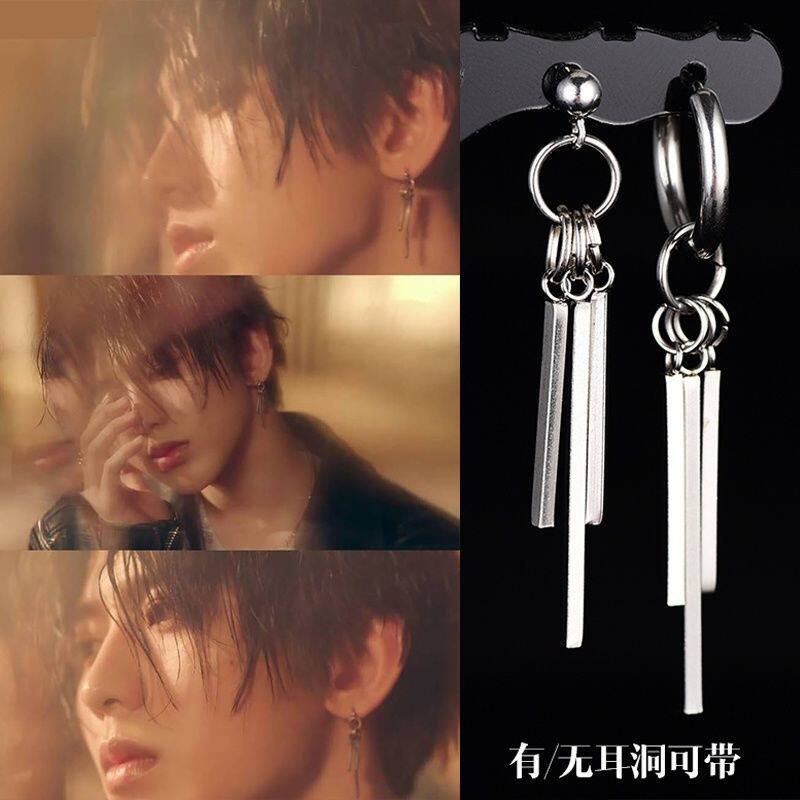 防弹少年团朴智旻同款耳环男流苏链耳坠朋克日韩潮流长耳夹耳钉女