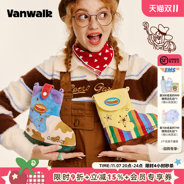 VANWALK牛仔系列 复古靴子包公仔包女礼物斜挎包新款毛绒单肩小包
