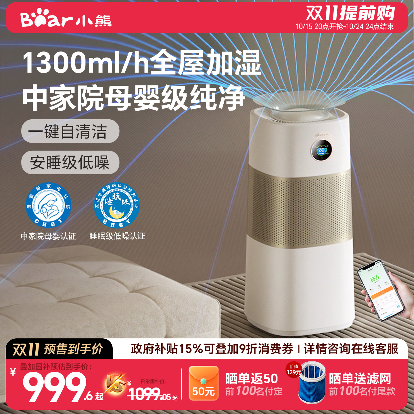 小熊加湿器家用静轻音卧室孕妇婴儿空调大雾量小型净化加湿一体机