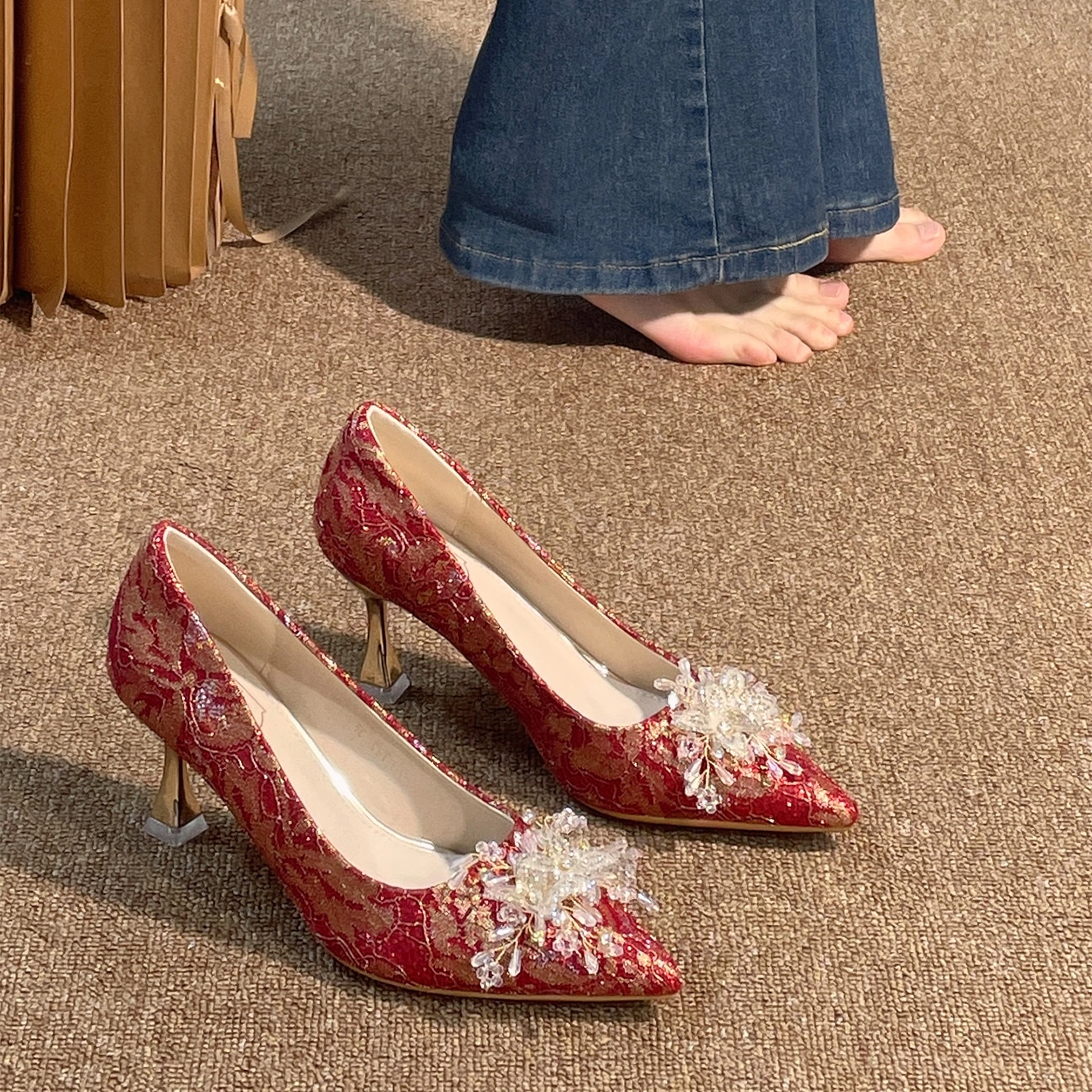红色尖头高跟鞋 浅口相关商品