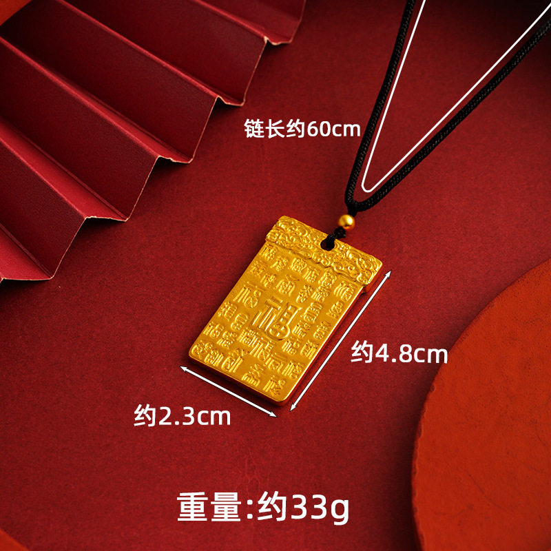越南沙金观音佛吊坠牌男女士欧币金不褪色仿黄铜镀金项链挂坠福字
