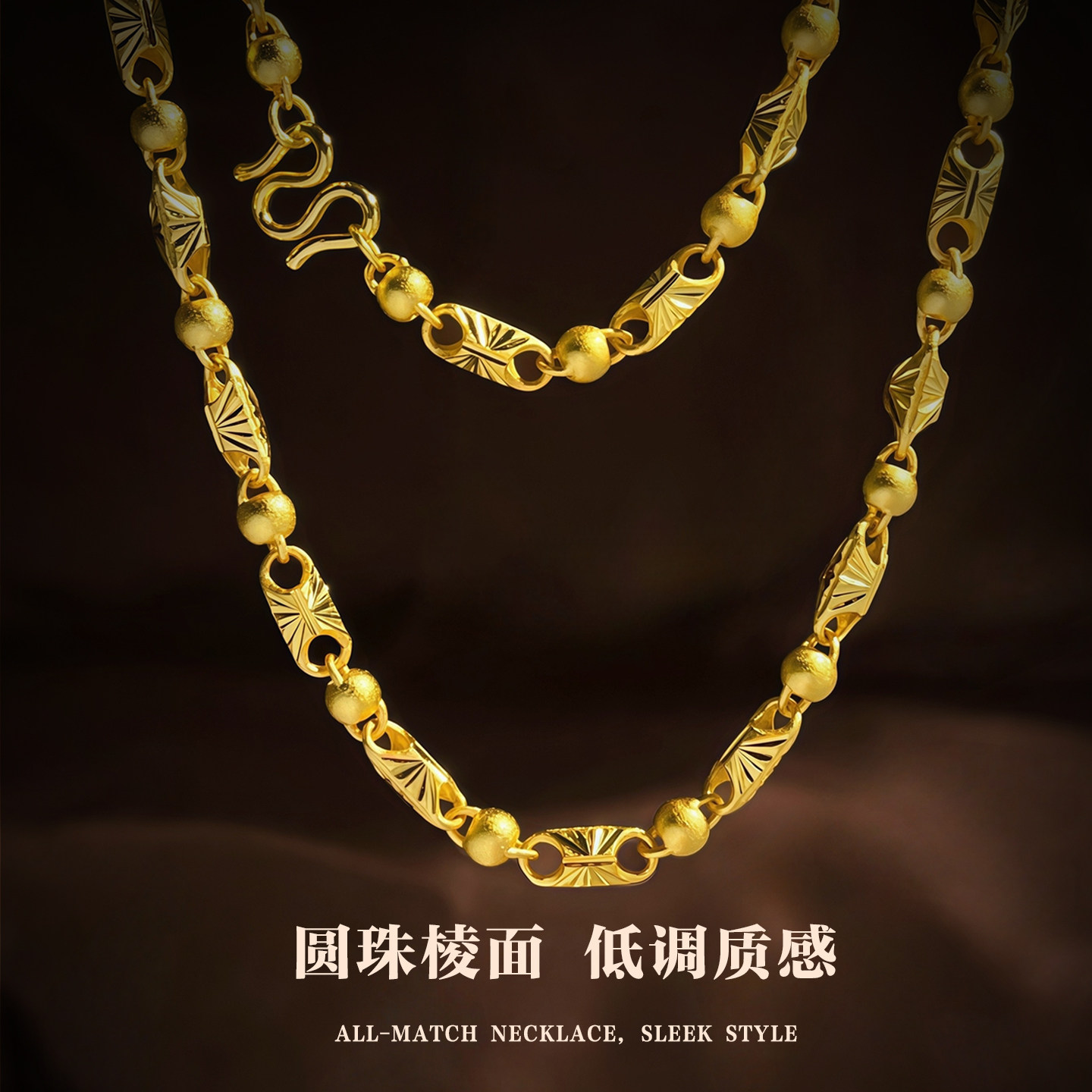 金店同款沙金镀金999圆珠项链男女款镀金光面光珠项坠仿大金链子