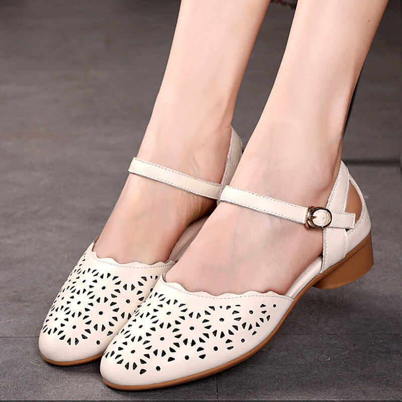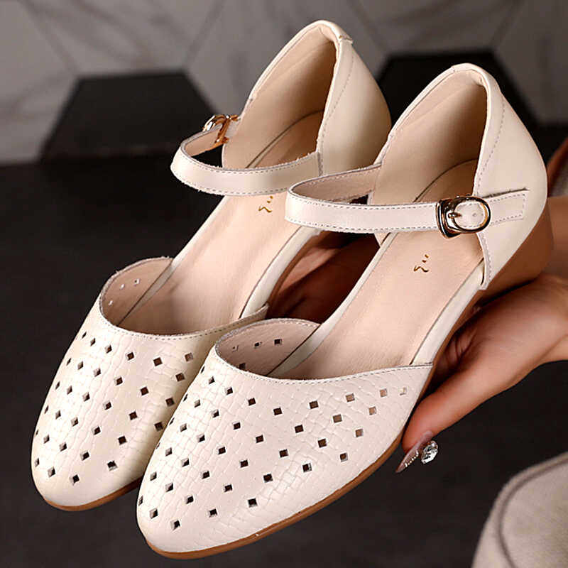 包头凉鞋女2026年夏新款低跟真皮软底手工女鞋舒适中年妈妈鞋爆款