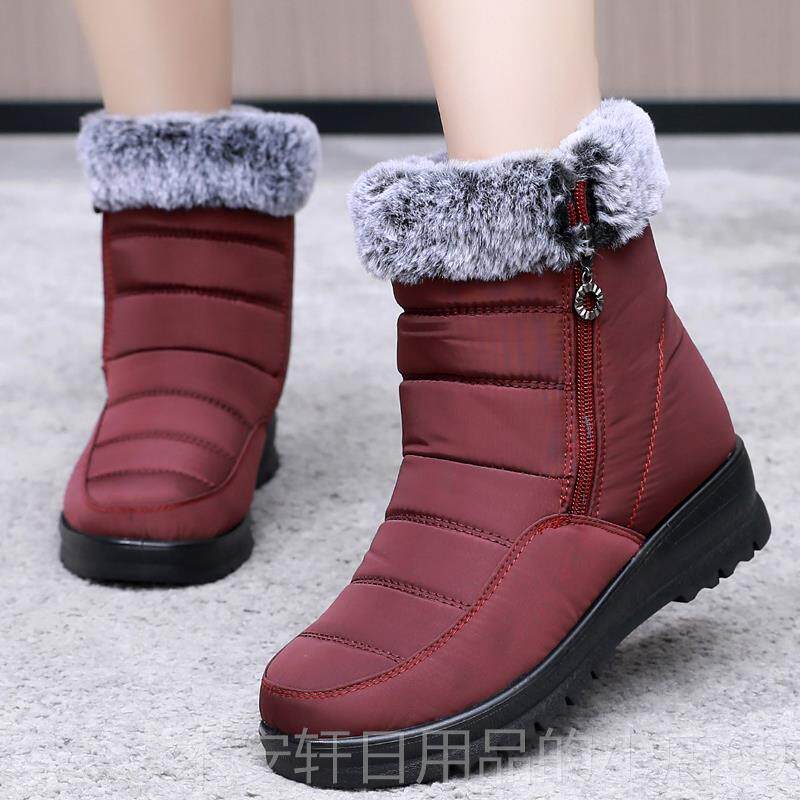 高档妈妈加鞋厚雪地子女冬加绒中筒靴老防滑靴保暖中年人女鞋平底