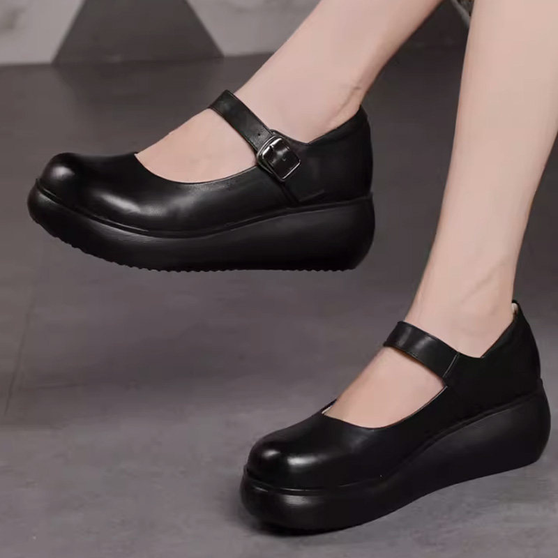 真皮坡跟单鞋女2026新款秋季软底舒适黑色皮鞋厚底软皮中年妈妈鞋