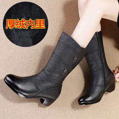 高档靴子真皮中筒靴女女士靴中年中女跟粗跟中靴妈妈棉鞋皮大码靴