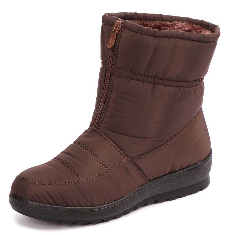 冬季休闲平跟中年加绒防寒加厚棉鞋圆头中筒保暖雪地靴妈妈靴子女