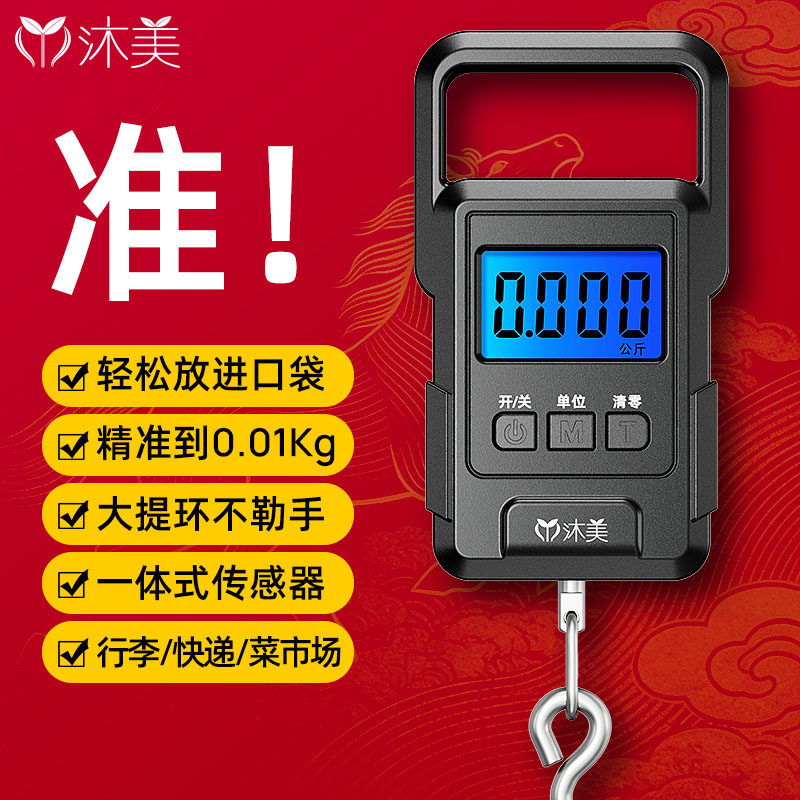 沐美便携式手提电子秤高精度随身家用行李小型快递称重弹簧称鱼器