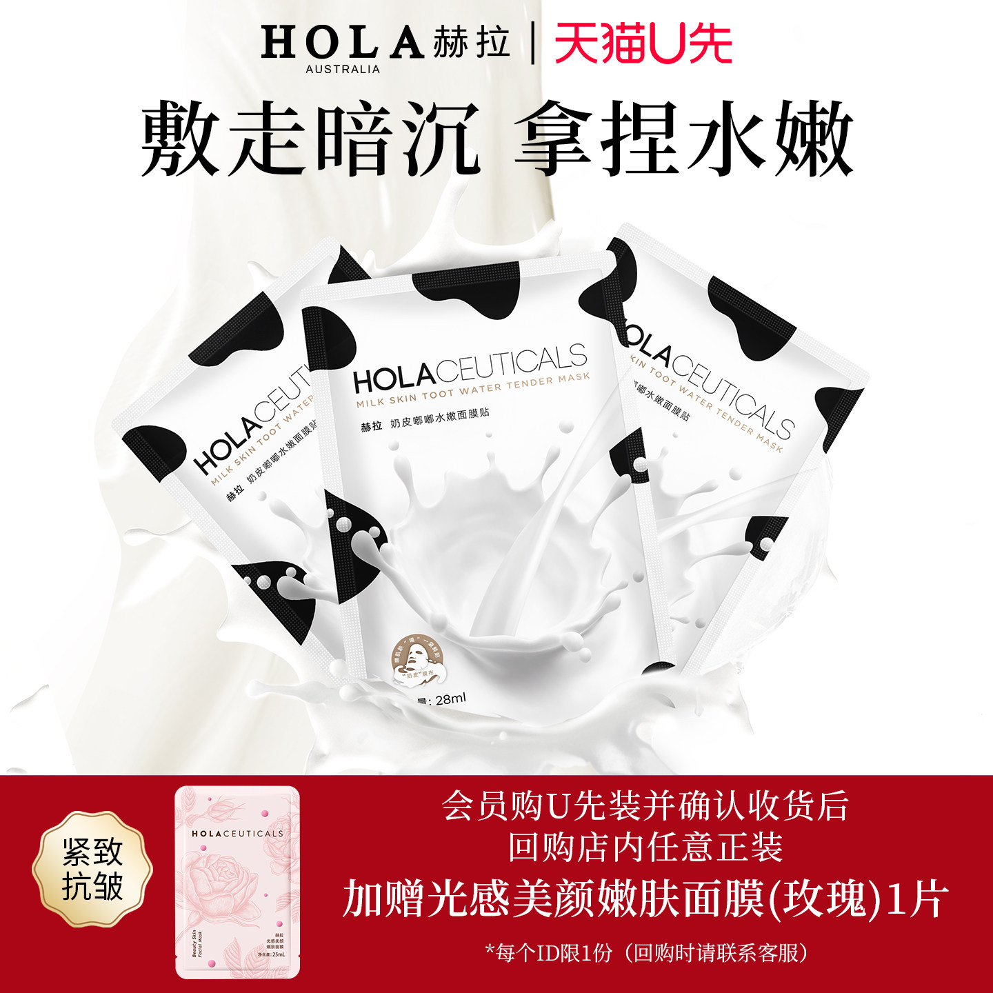 【天猫U先】Hola/赫拉奶皮嘟嘟牛奶补水保湿熬夜烟酰胺提亮面膜