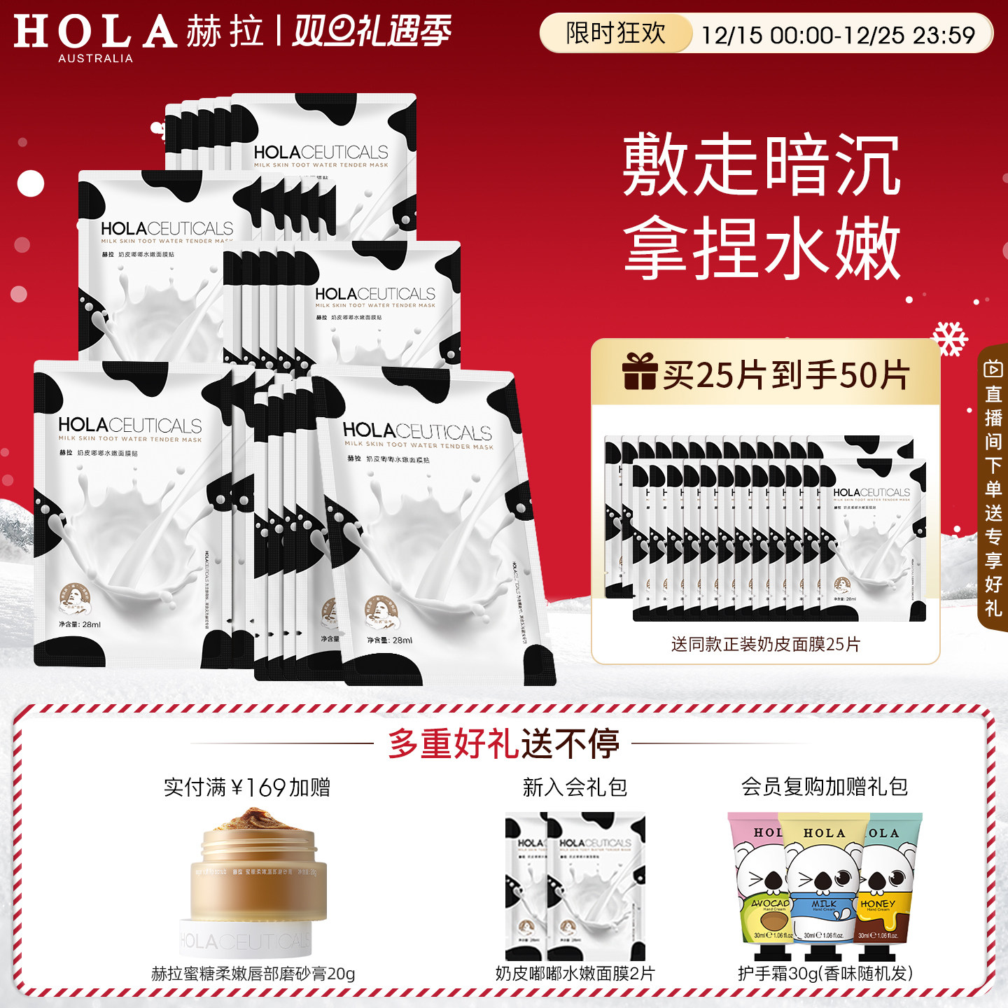 Hola赫拉牛奶爆浆面膜牛奶补水保湿熬夜烟酰胺滋润面膜贴男女正品