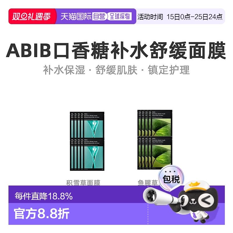 abib面膜口香糖牛奶鱼腥草柚子积雪草PH蜂蜜弱酸性爽肤水阿彼芙女