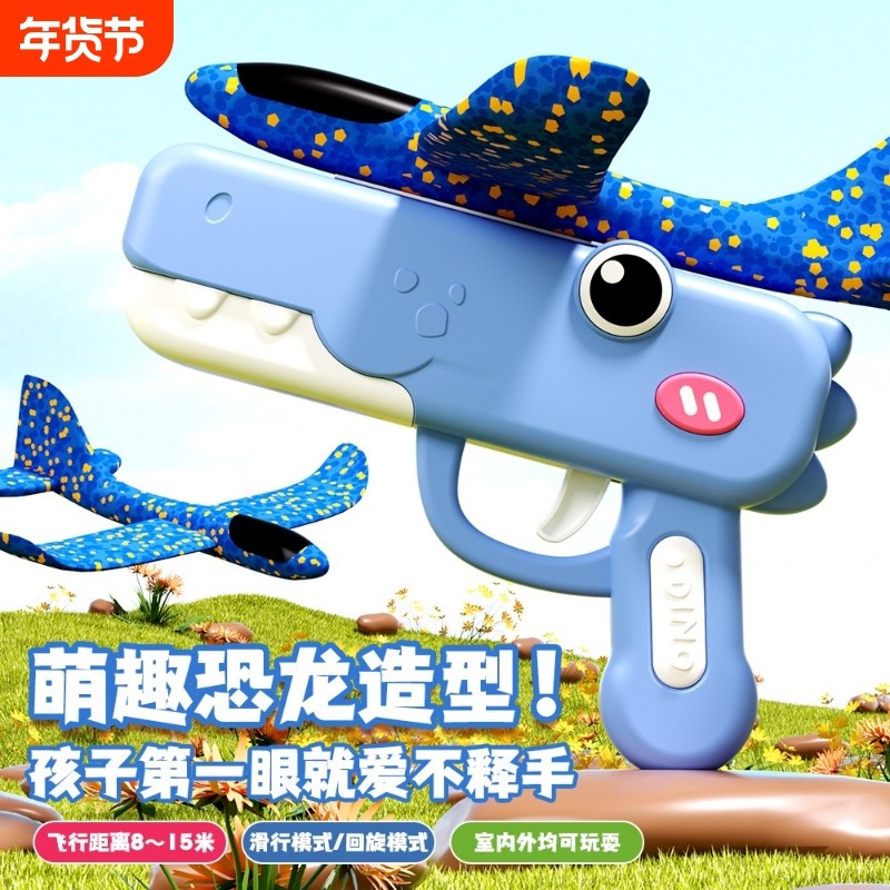 儿童萌趣泡沫飞机呆萌恐龙弹射枪摆地摊户外亲子互动网红生日玩具