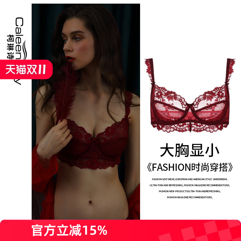 女士内衣内裤2024新款红色蕾丝薄款大胸显小本年蛇年超薄聚拢文胸