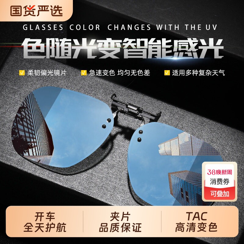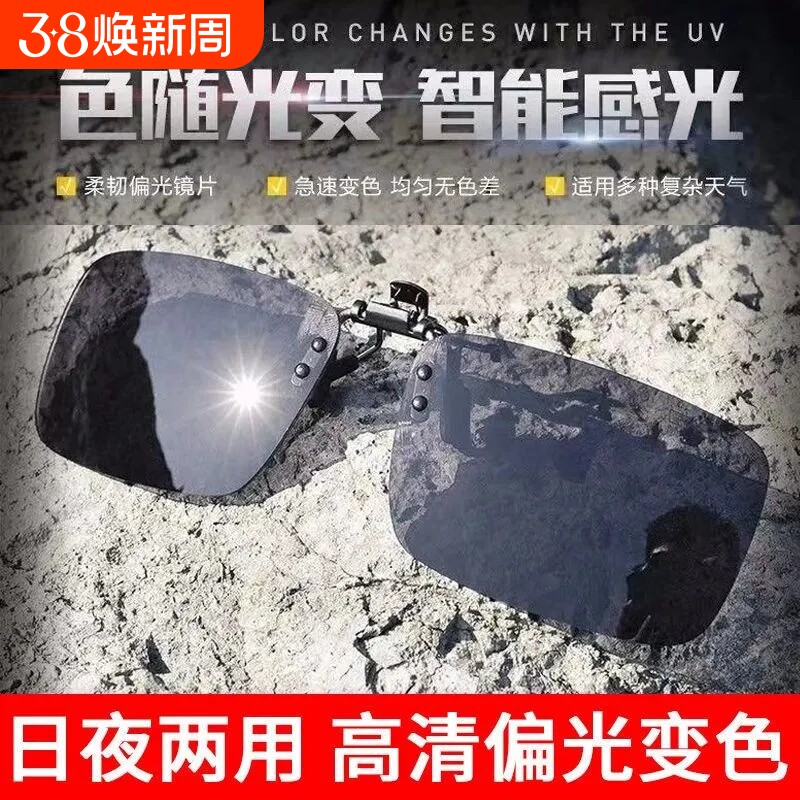 gm变色墨镜夹片男女开车夜视防紫外线钓鱼偏光片可套近视太阳眼镜