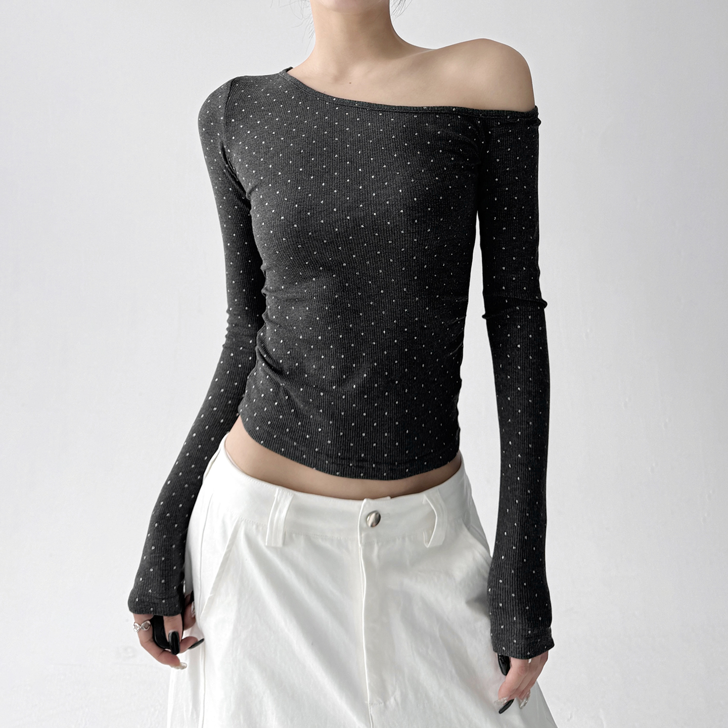 甜辣风独特别致小上衣漏肩性感长袖打底衫女露脐短款洋气卡腰小衫