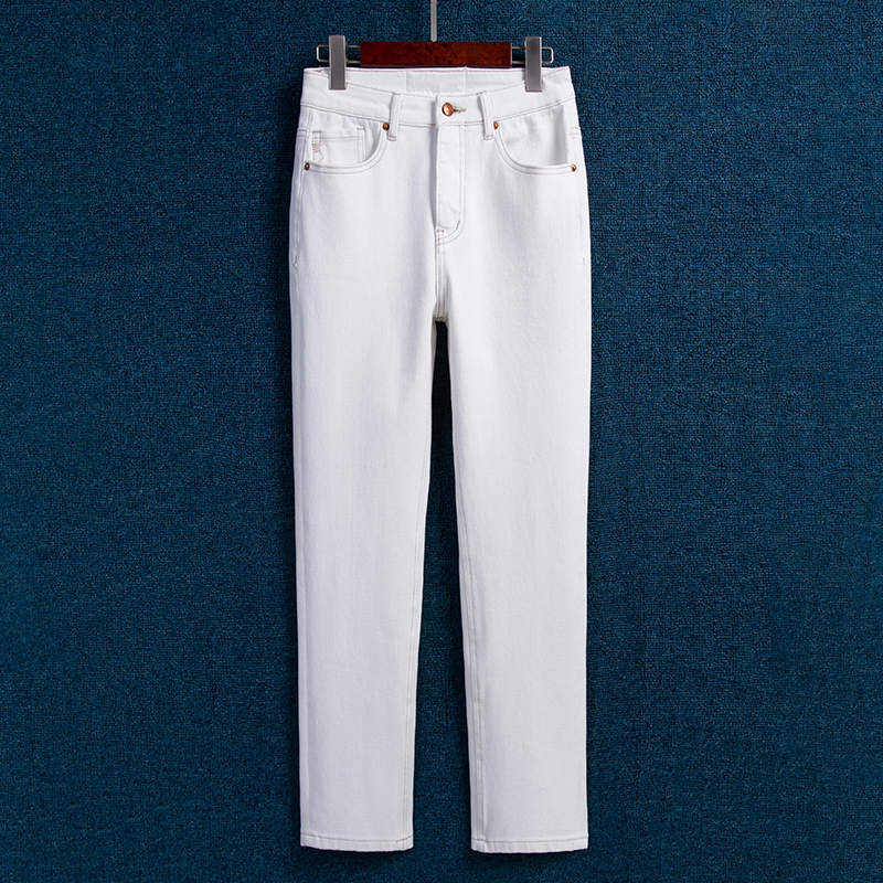 新款男士白色牛仔裤子修身小脚秋冬季纯棉弹力简约休闲九分裤厚款