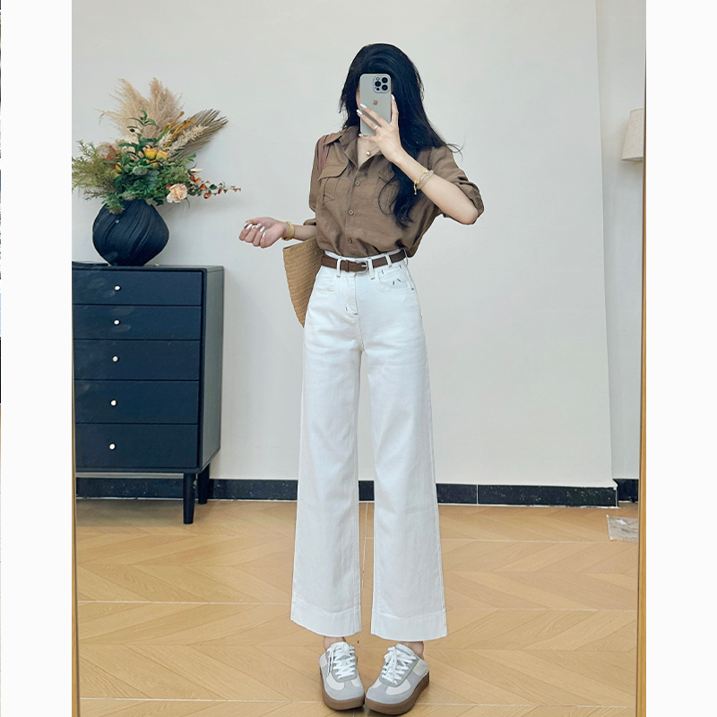 白色直筒牛仔裤女高腰显瘦2025夏季新款小个子显高八九分烟管裤子