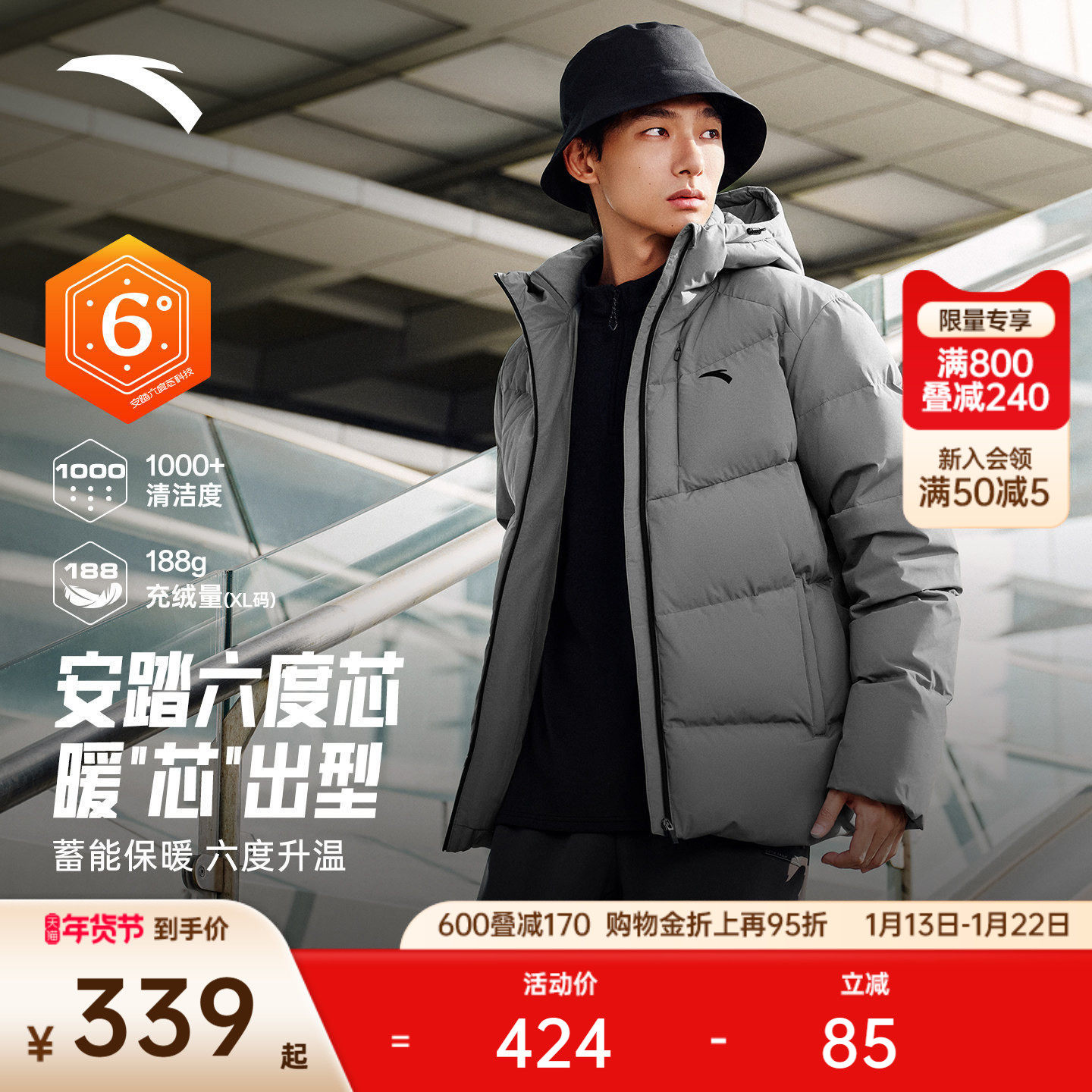 安踏短款四防运动羽绒服男冬季新款鸭绒保暖面包棉服防寒外套上衣