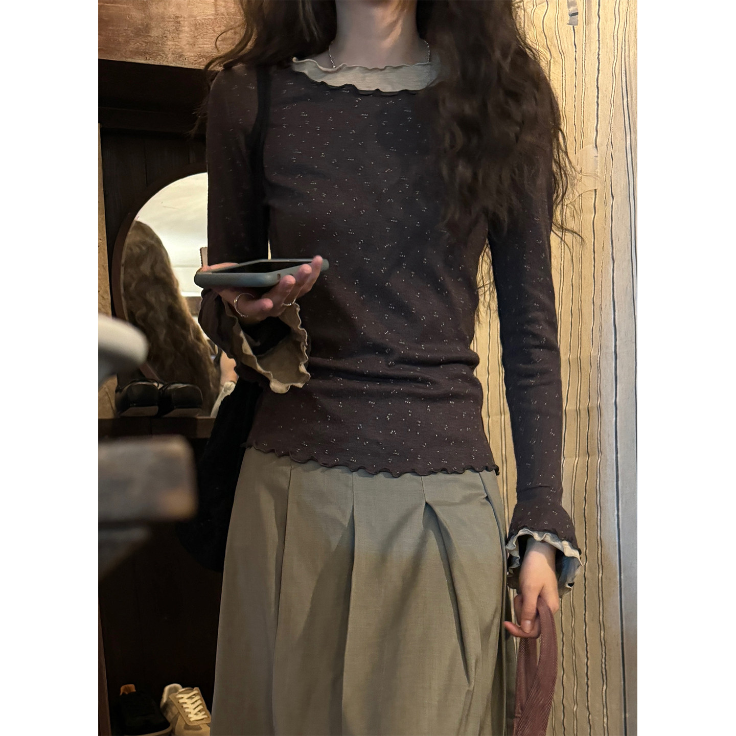 - 高领喇叭袖打底衫