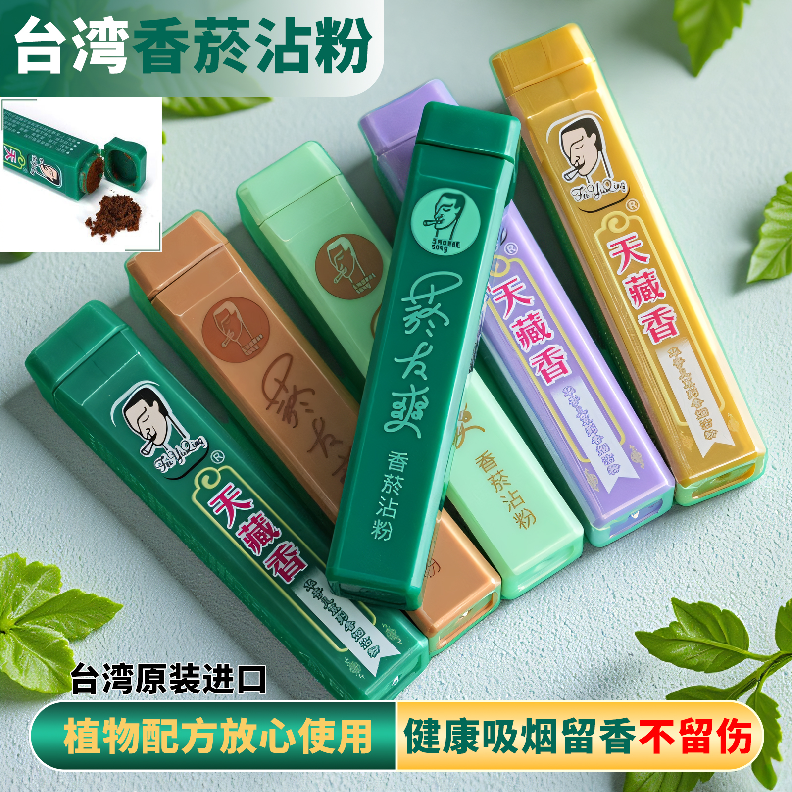 中国台湾原装正品天藏香烟沾粉薄荷清凉味香菸粘粉润肺化痰鼻烟粉