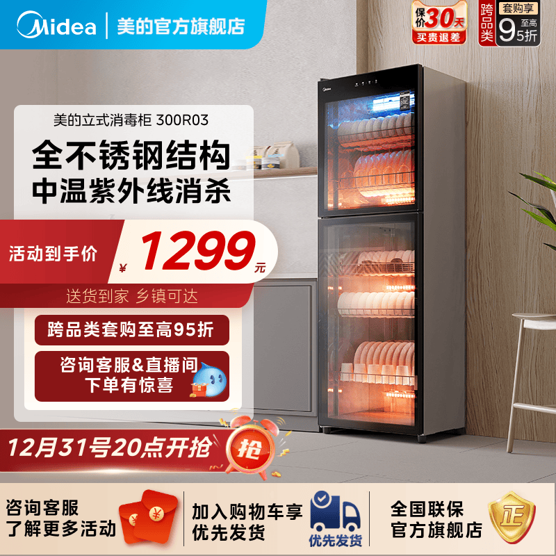 [政府补贴]美的消毒柜商用家用碗筷烘干一体立式餐饮保洁柜300R03