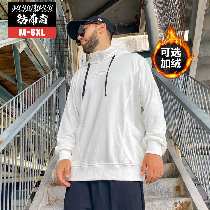 纺布者潮牌大码男装春秋连帽卫衣男胖子加肥加大宽松休闲套头上衣