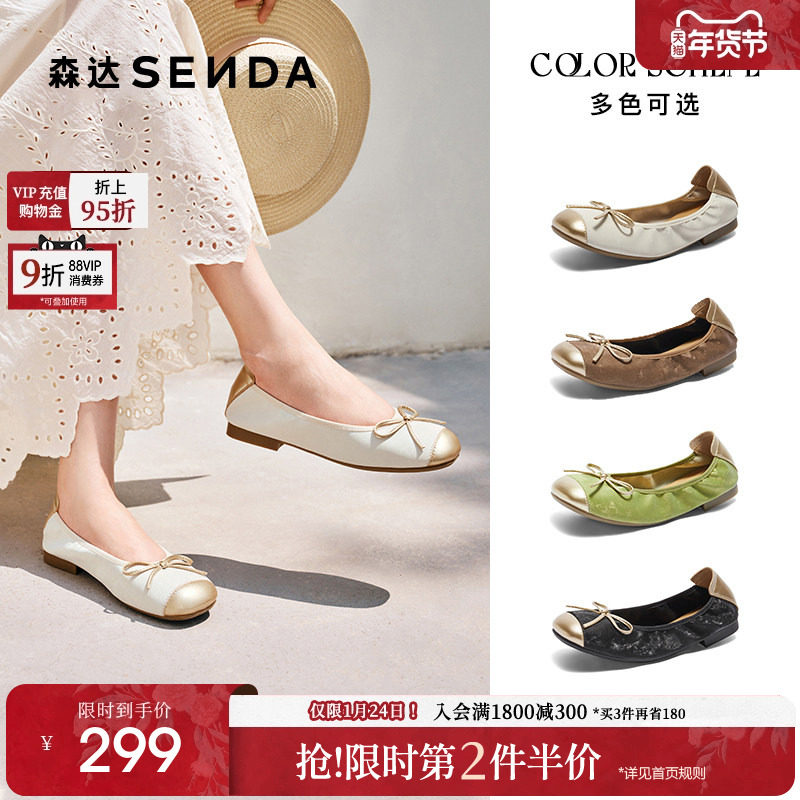 森达软底浅口平底单鞋晚晚鞋芭蕾女鞋蛋卷鞋法式超软小皮鞋ZCC40