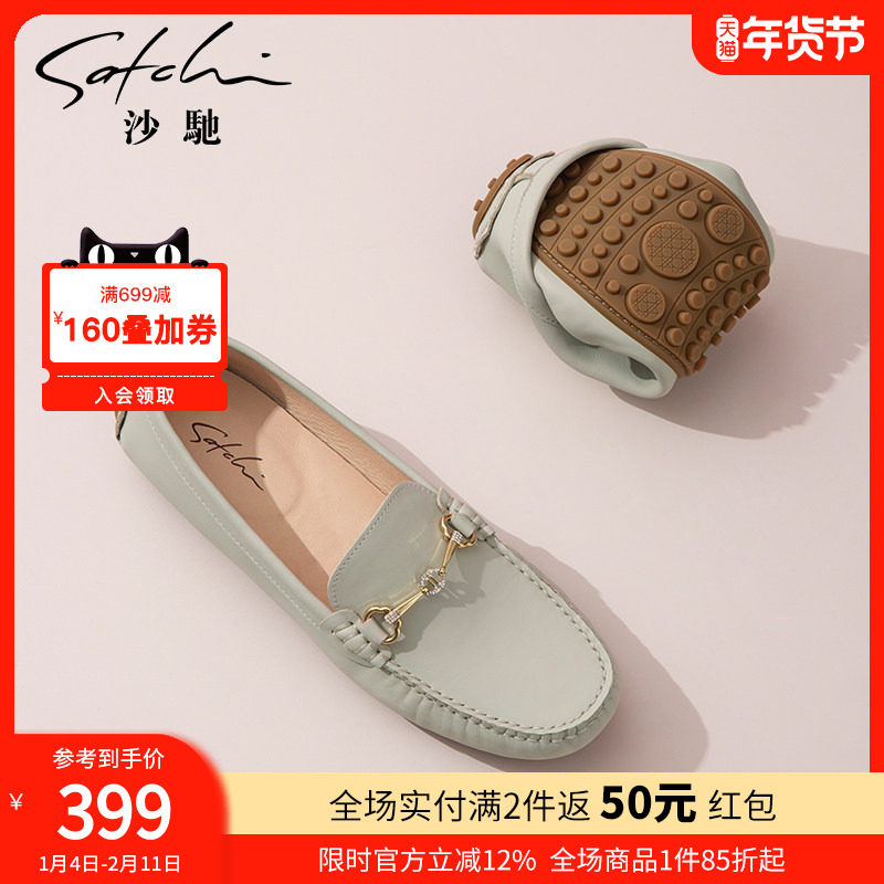 沙驰女鞋舒适休闲平底单鞋2025年秋季新款真皮豆豆鞋软底蛋卷鞋女