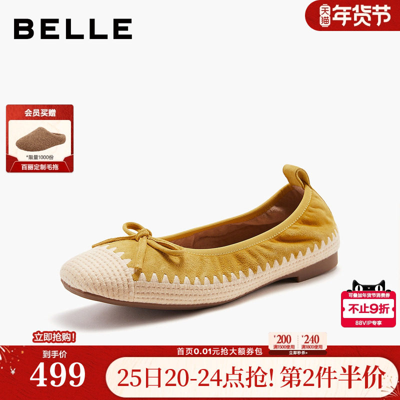百丽编织渔夫平底单鞋女2026春季新款软底浅口蛋卷鞋子F2J1DAQ6