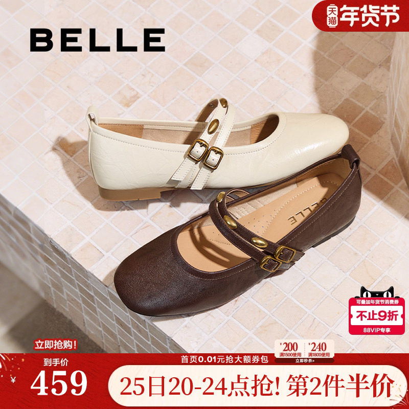 百丽小金豆羊皮芭蕾玛丽珍鞋女新款蛋卷平底浅口单鞋子E1V1DAQ6