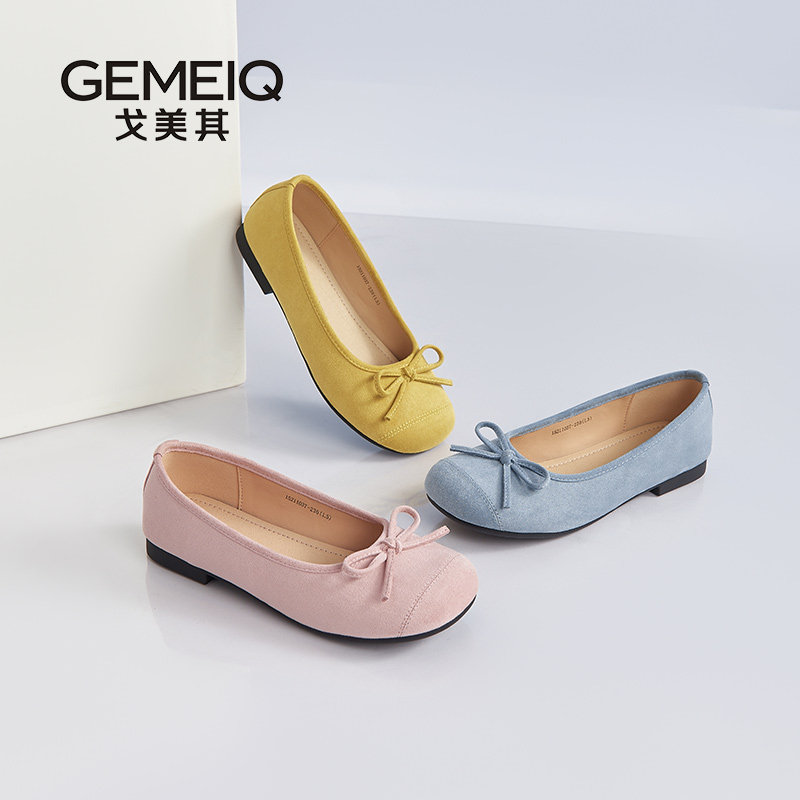 戈美其商场同款单鞋女2025新款春夏透气蝴蝶结圆头平底船鞋蛋卷鞋