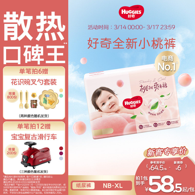 好奇小桃裤官方正品纸尿裤NB-XL码婴儿尿不湿散热透气亲肤超薄