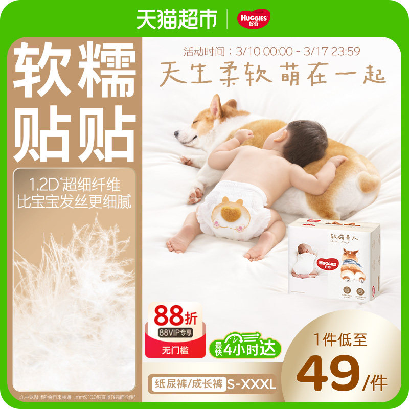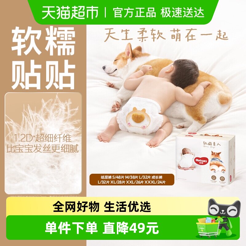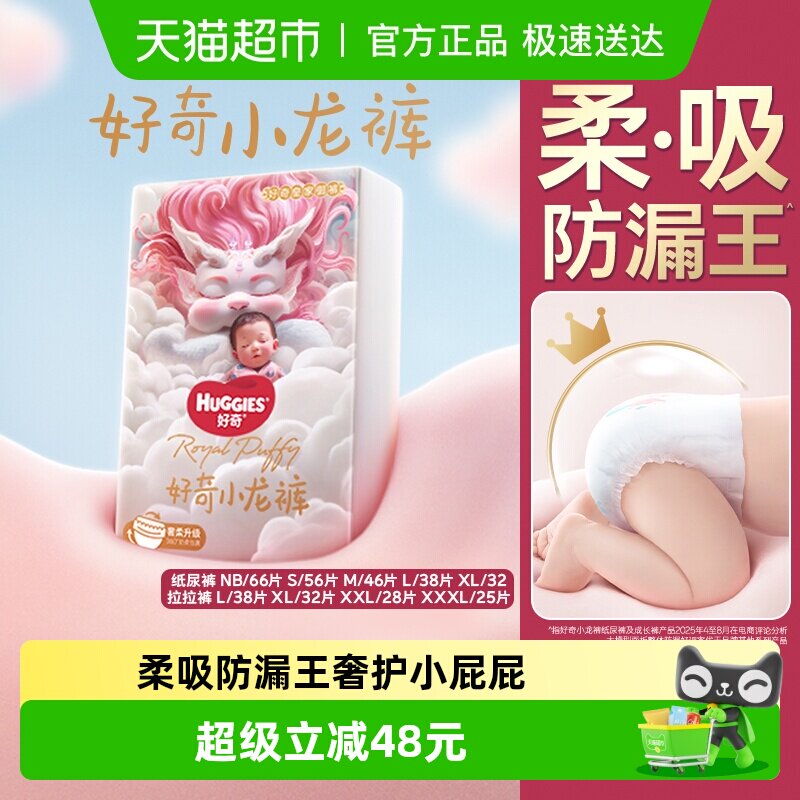 好奇软萌星人纸尿裤S48/M38/L32成长裤L32/XL28/XXL26/XXXL24