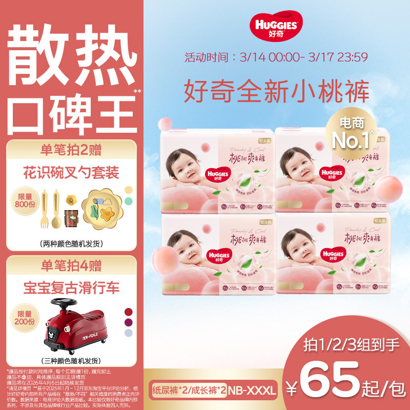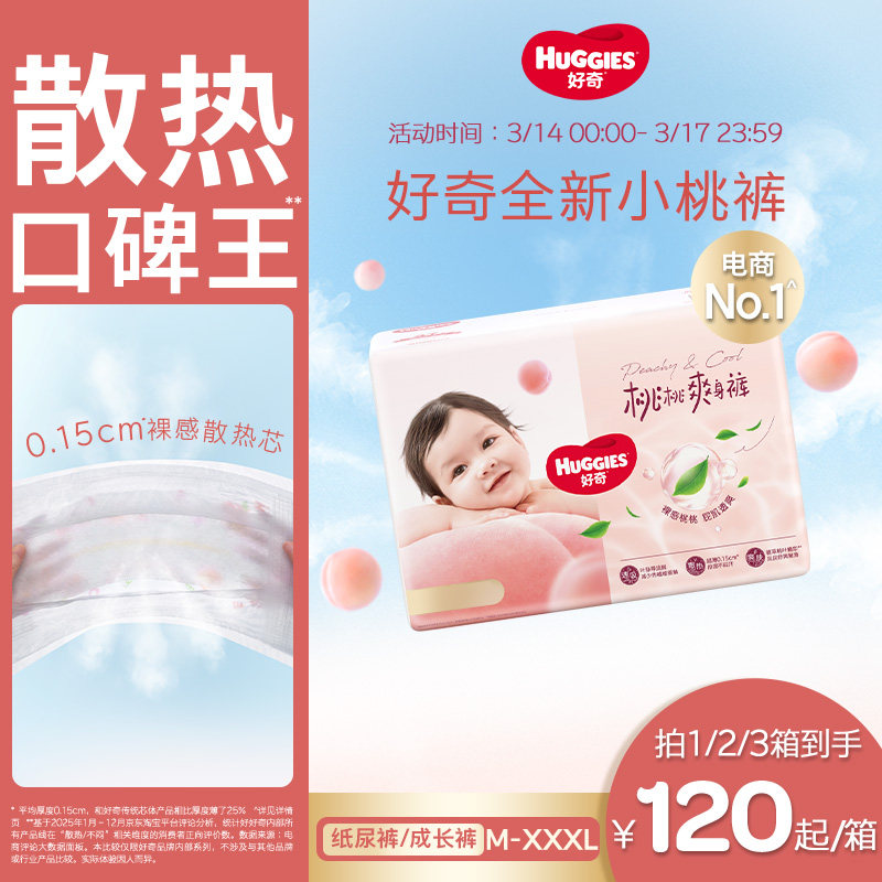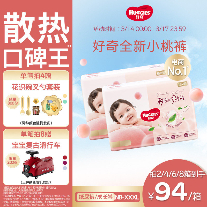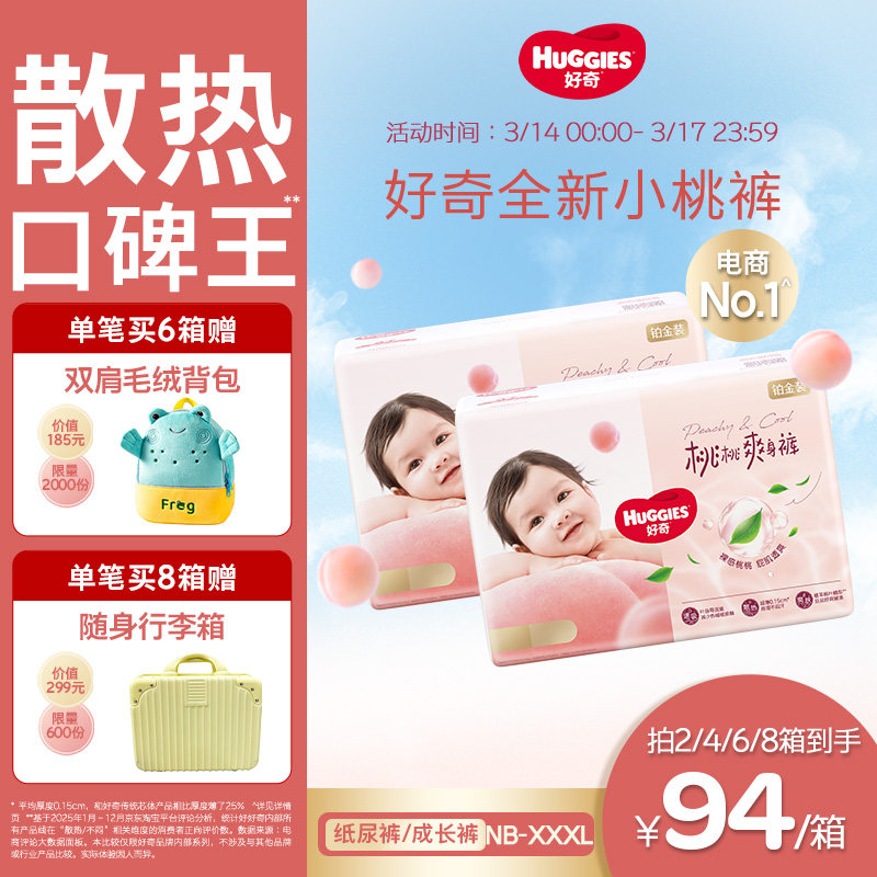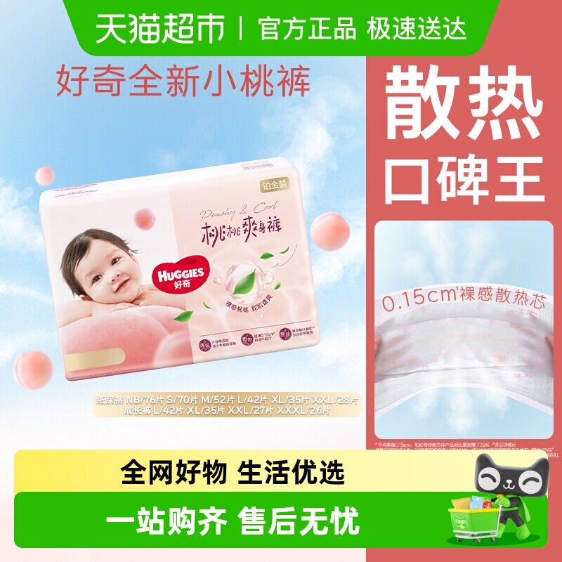 【透爽散热】好奇铂金装小桃裤纸尿裤NB-XXL拉拉裤L-3XL尿不湿
