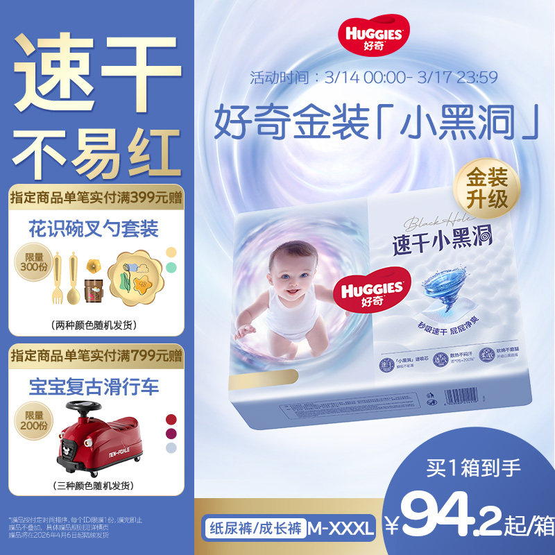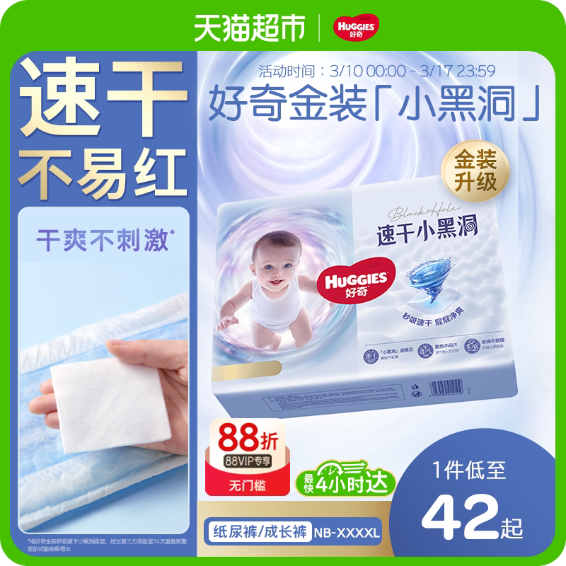 好奇金装纸尿裤拉拉裤NB-4XL速干不易红小黑洞超薄透气婴儿尿不湿