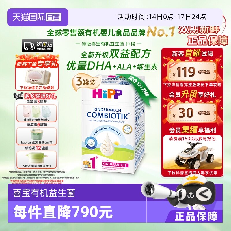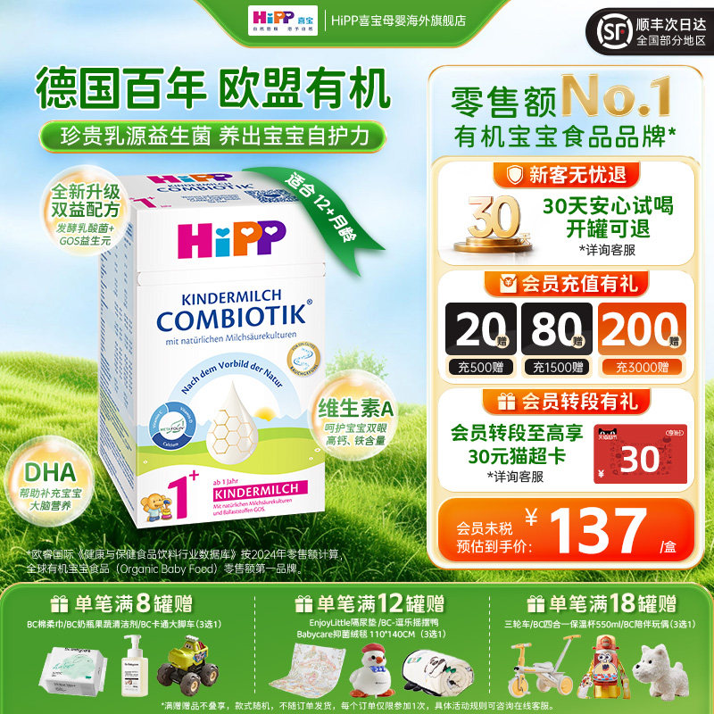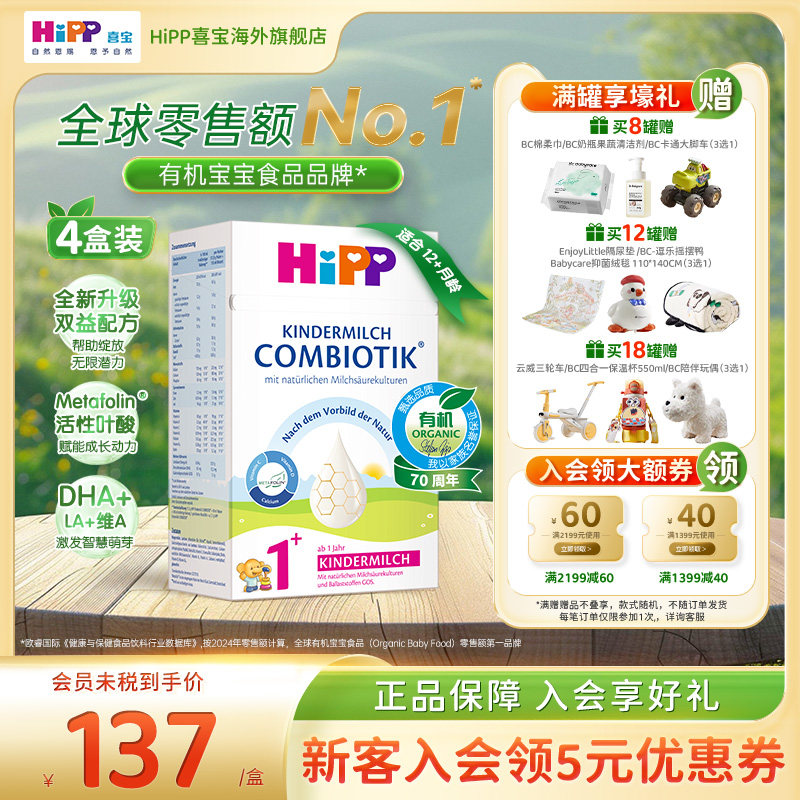 【旗舰】HiPP喜宝德国珍宝有机益生菌DHA高钙儿童配方奶粉1+段