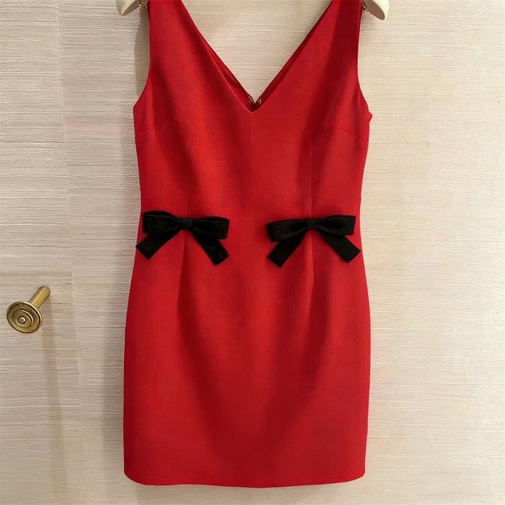 【现货】小众潮牌夏季新款黑色V领无袖背心裙小黑裙短款连衣裙女