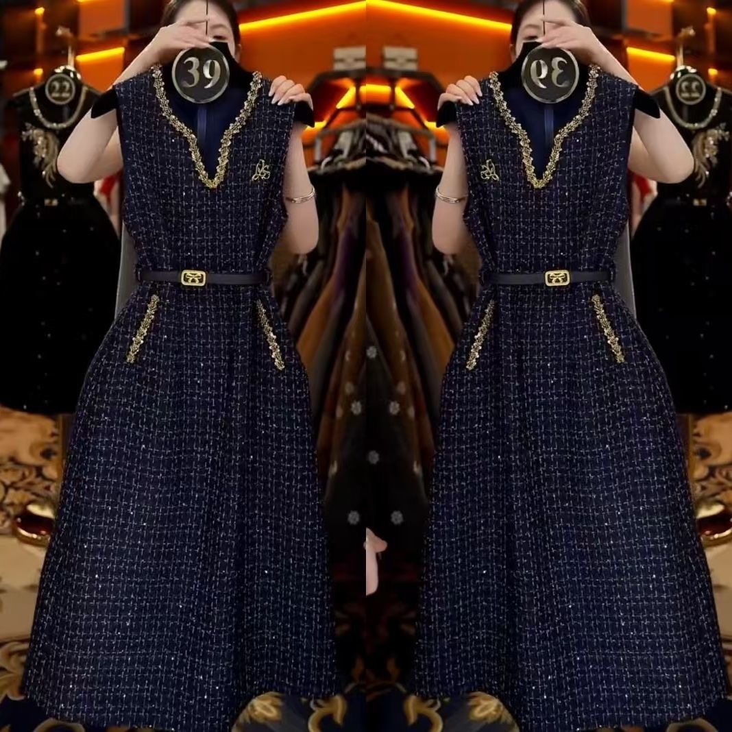 2025春新品 时尚设计感 复古丝绒宽松V领无袖背心裙 连衣裙长裙女