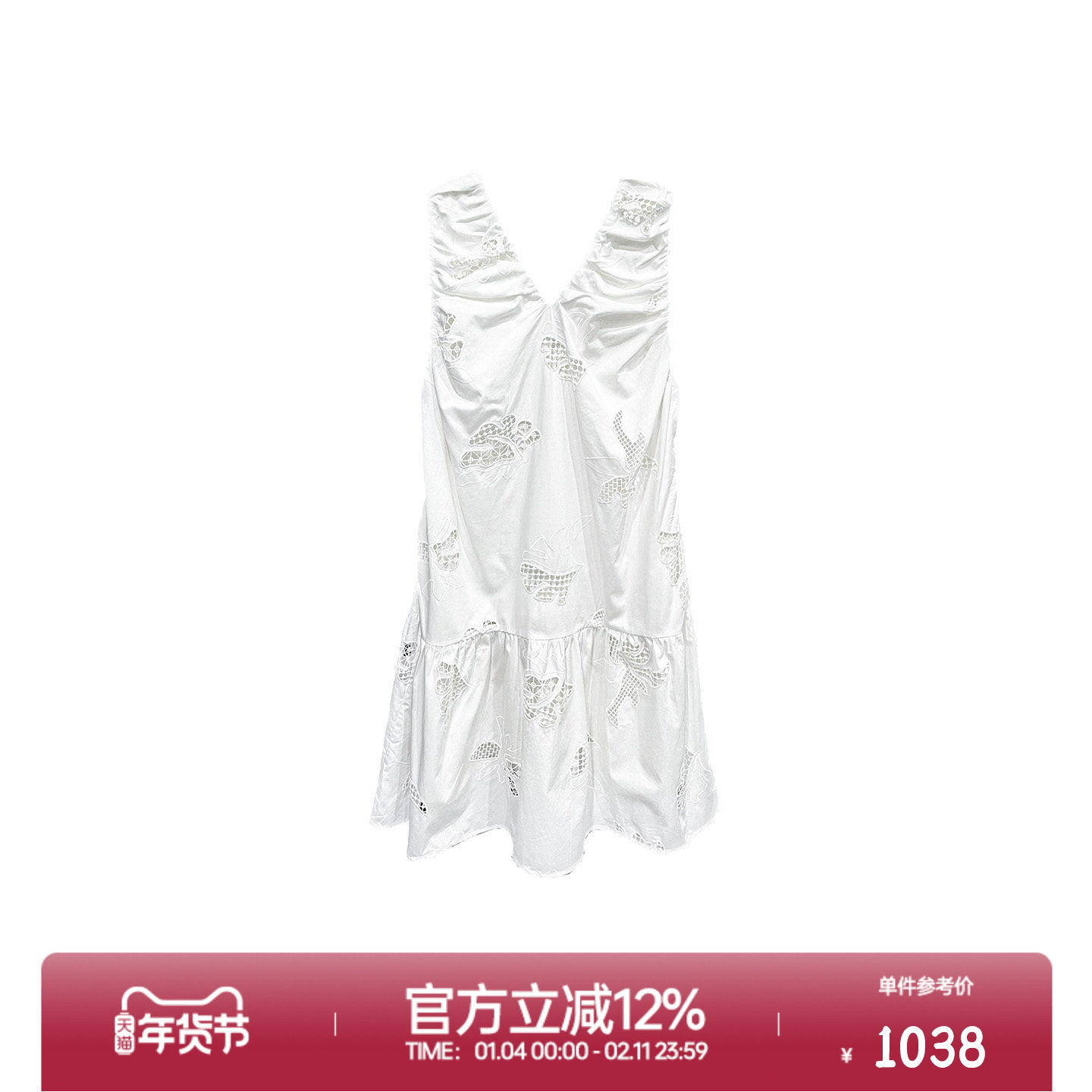 ENJOYME商场同款法式白色连衣裙女V领无袖背心裙女夏季度假沙滩裙
